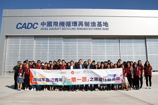 2018年香港青年「一帶一路」之黑龍江省考察團來到哈爾濱港資企業中國飛機循環再製造基地參觀。