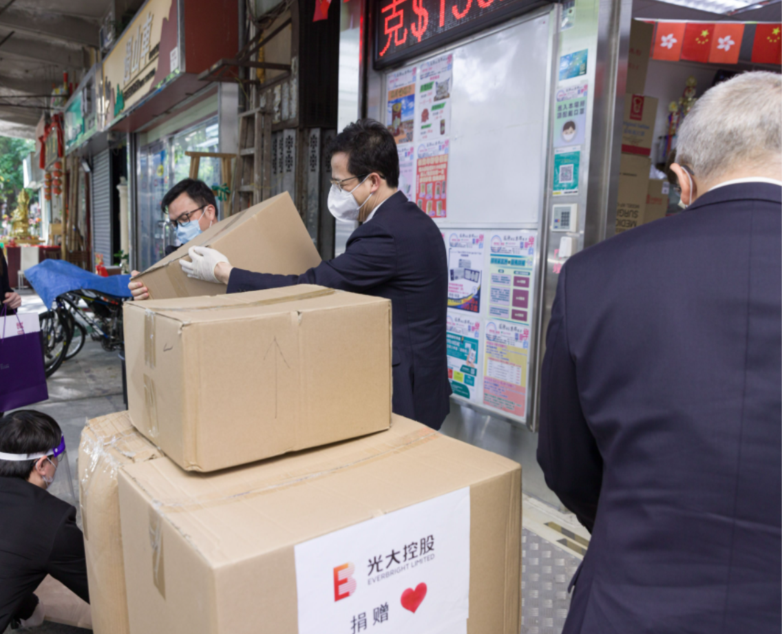 第五波疫情仍然严峻。近日,中飞租赁在光大控股带领下联合向新界基层义工及两家养老机构捐赠逾百箱防疫物资,全力支持基层一线义工和在院长者防疫抗疫。