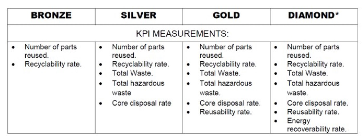 新的KPI 認證計劃是飛機、發動機或其他資產在其使用壽命結束時進行最佳實踐拆解部件管理的最新建議之合集。AFRA 認證的四個層級為: