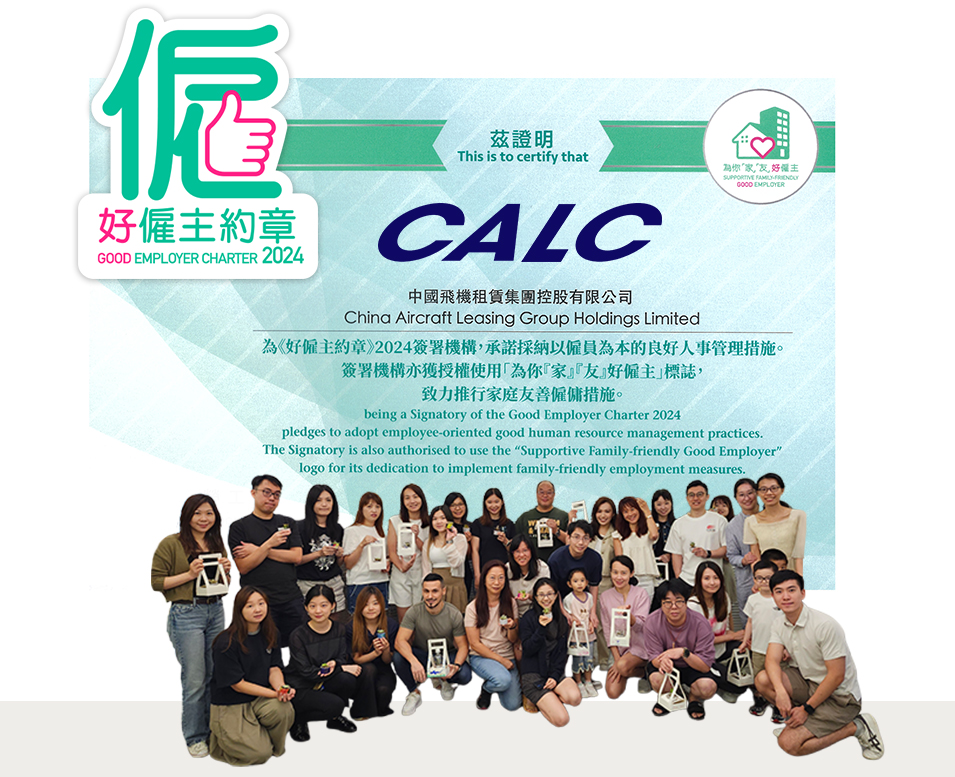 (香港 - 2024年10月14日)環球航空全產業鏈解決方案供應商 —中國飛機租賃集團控股有限公司(「中飛租賃」或本「公司」,連同其附屬公司統稱本「集團」;港交所股份代號:01848)榮幸宣佈,中飛租賃於日前舉辦的香港特區政府勞工處《好雇主約章》2024嘉許禮上獲頒勞工處“好雇主獎”,表彰本公司良好的人事管理措施,及積極為員工創造關愛且多元化的職場環境,致力提供兼顧職業成就感與生活幸福感的事業平台,在可持續商業實踐中表現出色。