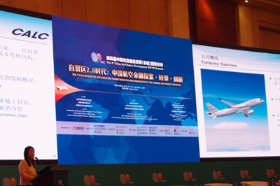 Tianjin – 30 September 2015 - China Aircraft Leasing Group Holdings Limited (“CALC” or the “Group”, stock code: 01848.HK), the full value-chain aircraft solution provider, reviewed with industry leaders at the 4th China Air Finance Development (DFTP) Summit the support from Dongjiang Management Committee regarding the innovative systems and policies of Dongjiang Free-Trade Port (“DFTP”), shared CALC’s mission of “Creating value for China’s Aviation Development”, and revealed the Group’s strategy to contribute to China’s aviation finance development through DFTP.